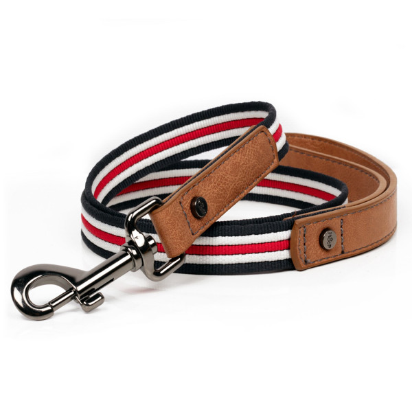 • Guinzaglio tricolore in nylon con similpelle vintage color cammello