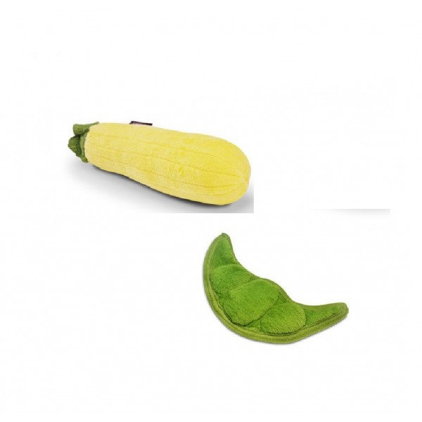 Set di 2 pezzi, zucchina, baccello, tutti dotati di squeaker all'interno, perfetti per cani di piccola e media taglia.