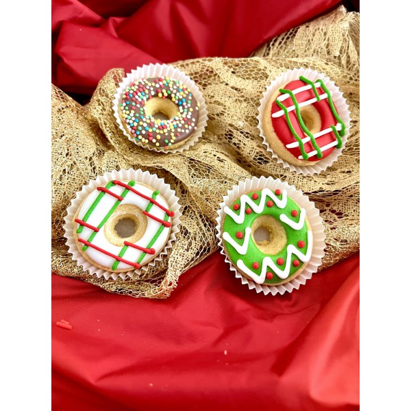Dolci Impronte Vassoio 15 Mini Donuts Natale - 215g Prodotti interamente a mano, uno ad uno, ecco il vassoio con 15 mini donuts natalizi bianchi, (4.5cm),rossi e verdi. Consumare preferibilmente entro 9 mesi dalla data del lotto di produzione. A confezione aperta tenere i prodotti lontani da luce diretta e fonti di calore. Alimento complementare per cani...
